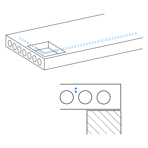 Die Planung und Bemessung der einzelnen Geschossdecken erfolgt individuell auf Grundlage der uns zu übermittelnden technischen Unterlagen wie Grundrissen, Schnitten, Positionsplänen und statische Berechnungen bzw. Lastenplänen. Dabei können alle konstruktiven Besonderheiten wie Aussparungen, Treppenanschlüsse, Balkone (auch als Kragplatte), Durchlaufträger, deckengleiche Unterzüge planungs- und damit auch ausführungstechnisch berücksichtigt werden. Nichtwinklige Grundrisse, Rundungen und polygonale Bereiche (z.B. Erker) sind mit dem MX-Deckensystem realisierbar.